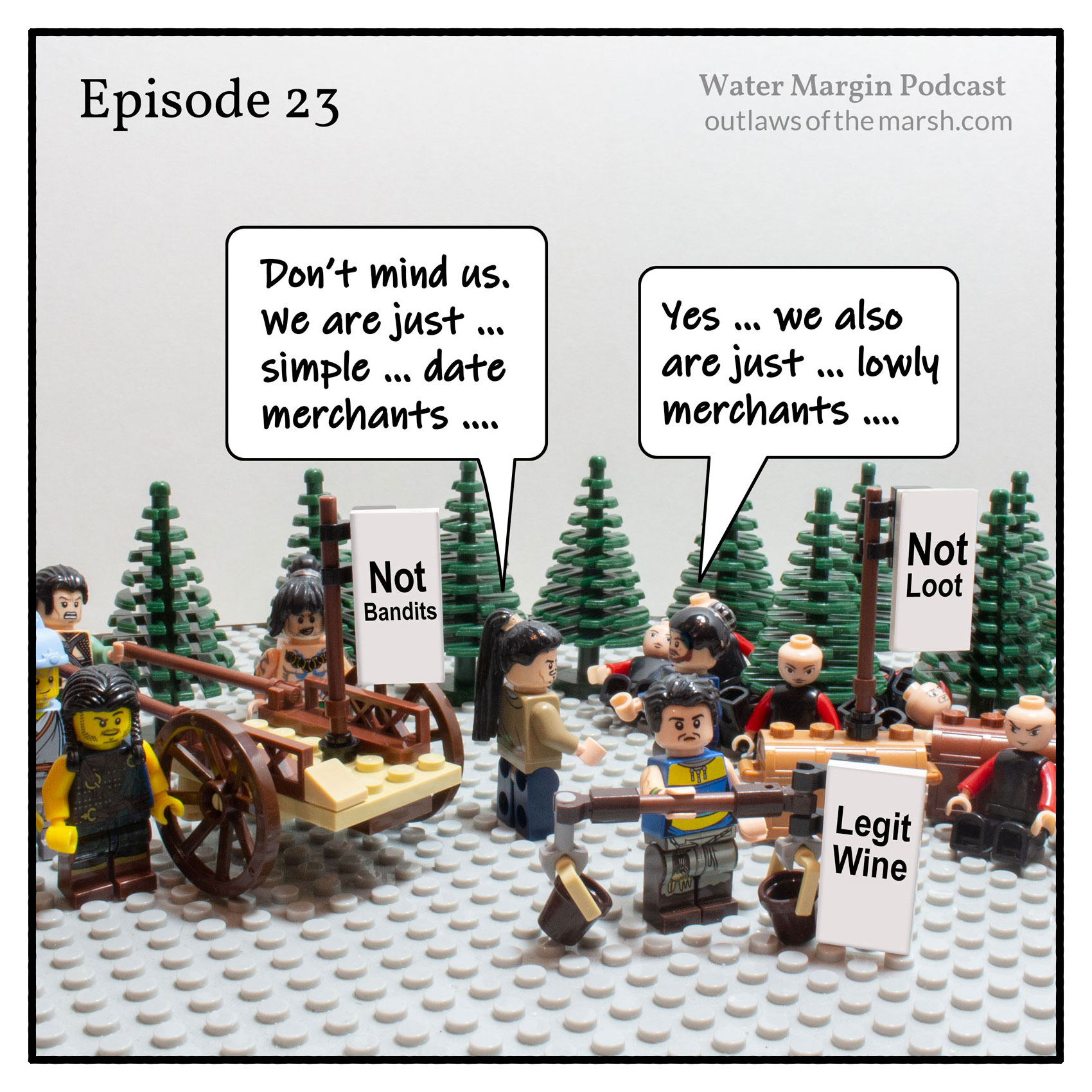 So, yeah, I’m sure you can guess who those seven guys were. But the bigger mystery is how the wine got drugged when the hijackers drank from both barrels and were just fine. To find out, tune in to the next episode of the Water Margin Podcast. Also on the next episode, Yang Zhi finally gets to tell his men “I told you so,” for all the good it’ll do him. So join us next time. Thanks for listening!