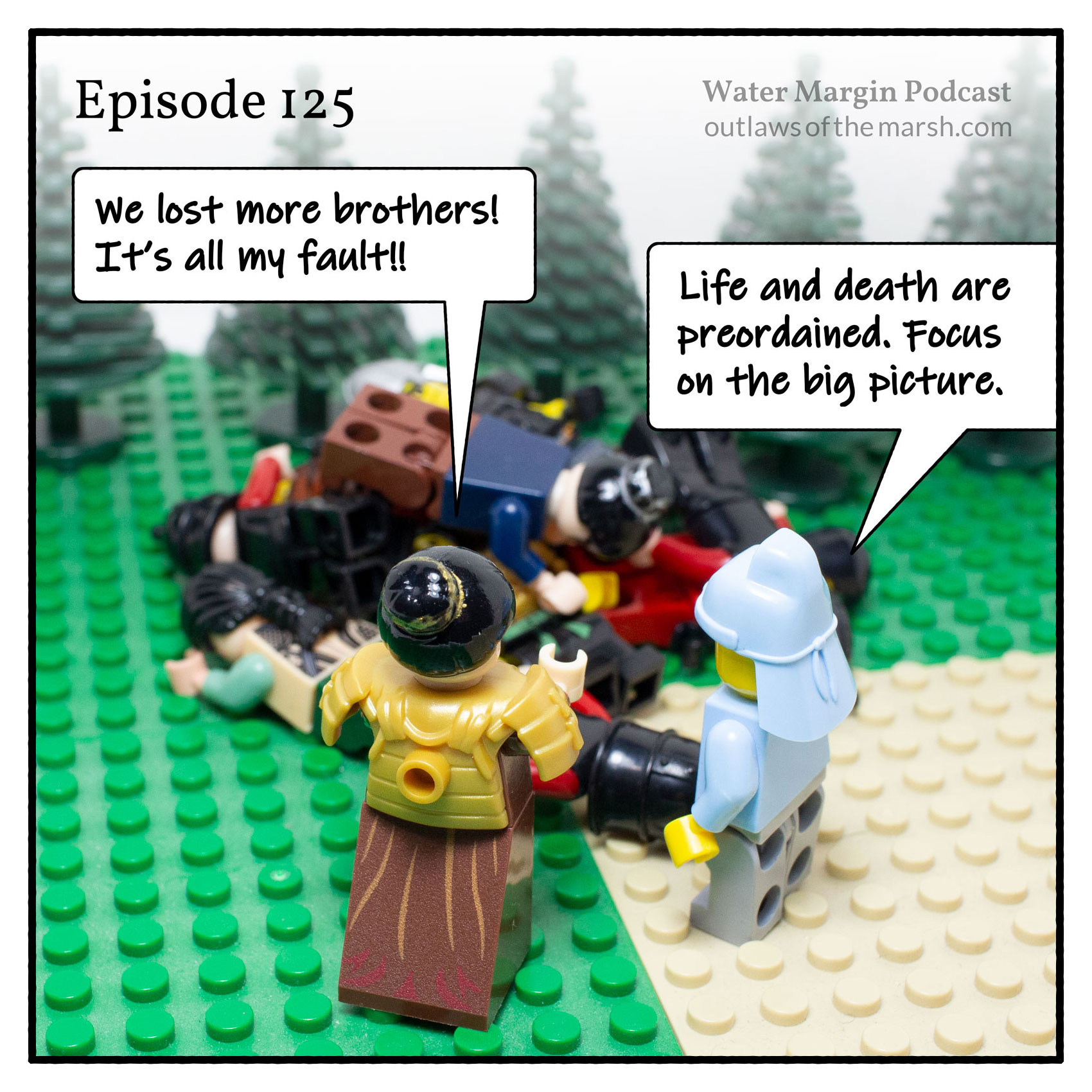 But this latest victory came with its own cost, too. The chieftain Xuan (1) Zan (4) the Ugly Prince Consort had fought an enemy general to the death, as both died from their injuries under a bridge. Song Jiang was again heartbroken over the loss of yet another brother, the ninth, if you’re keeping count. And he arranged for a fine coffin and burial for Xuan Zan at the foot of a nearby mountain.