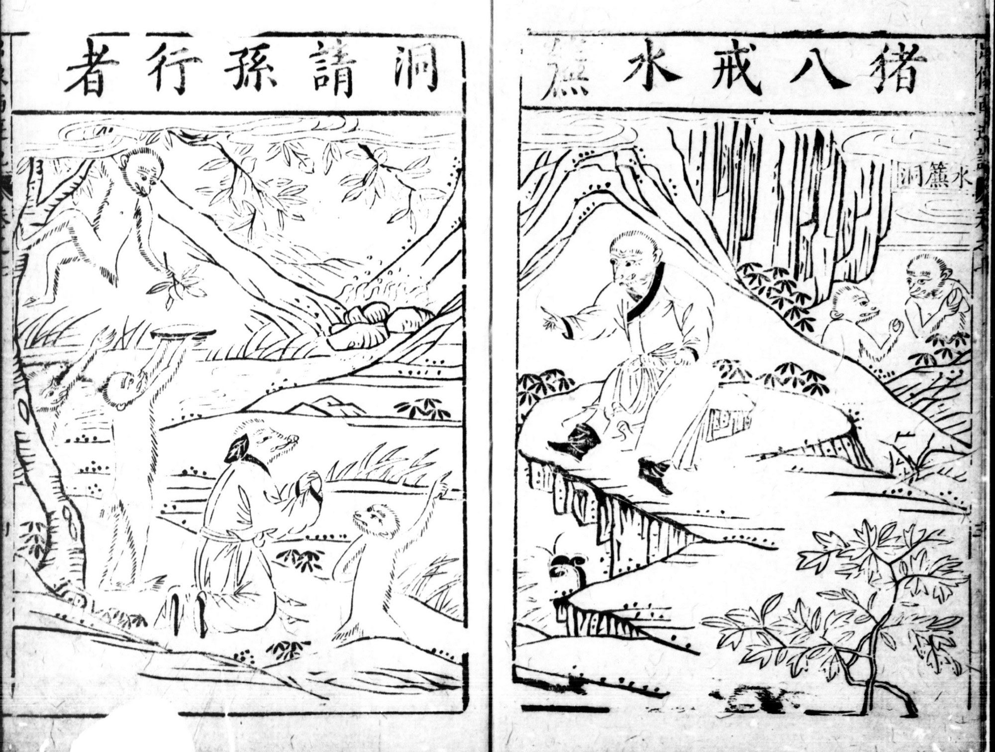 The monkeys obeyed his command, and Sun Wukong and Zhu Bajie took to the air hand in hand and flew across the East Sea. When they reached the western shore of the sea, Wukong paused and said, “Brother, wait a bit; let me go wash up in the sea first.”